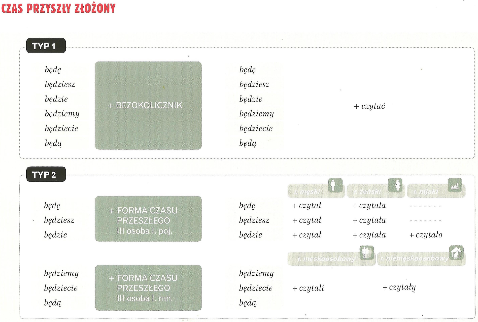 - завершённых действий: „Przeczytałem książkę” → «Я прочитал книгу»