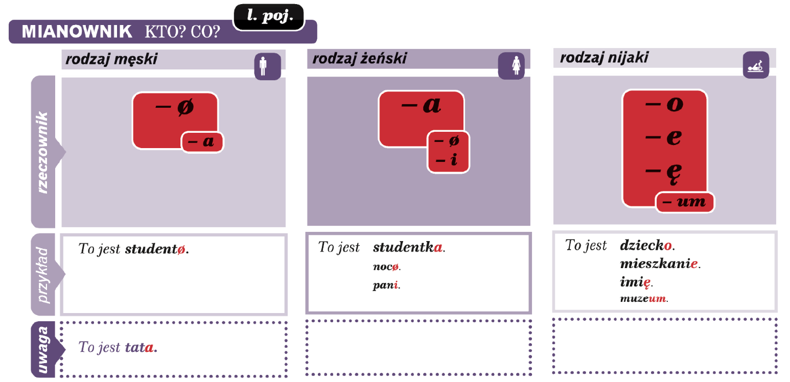 Mianownik liczby mnogej przeczowników niemęskoosobowych