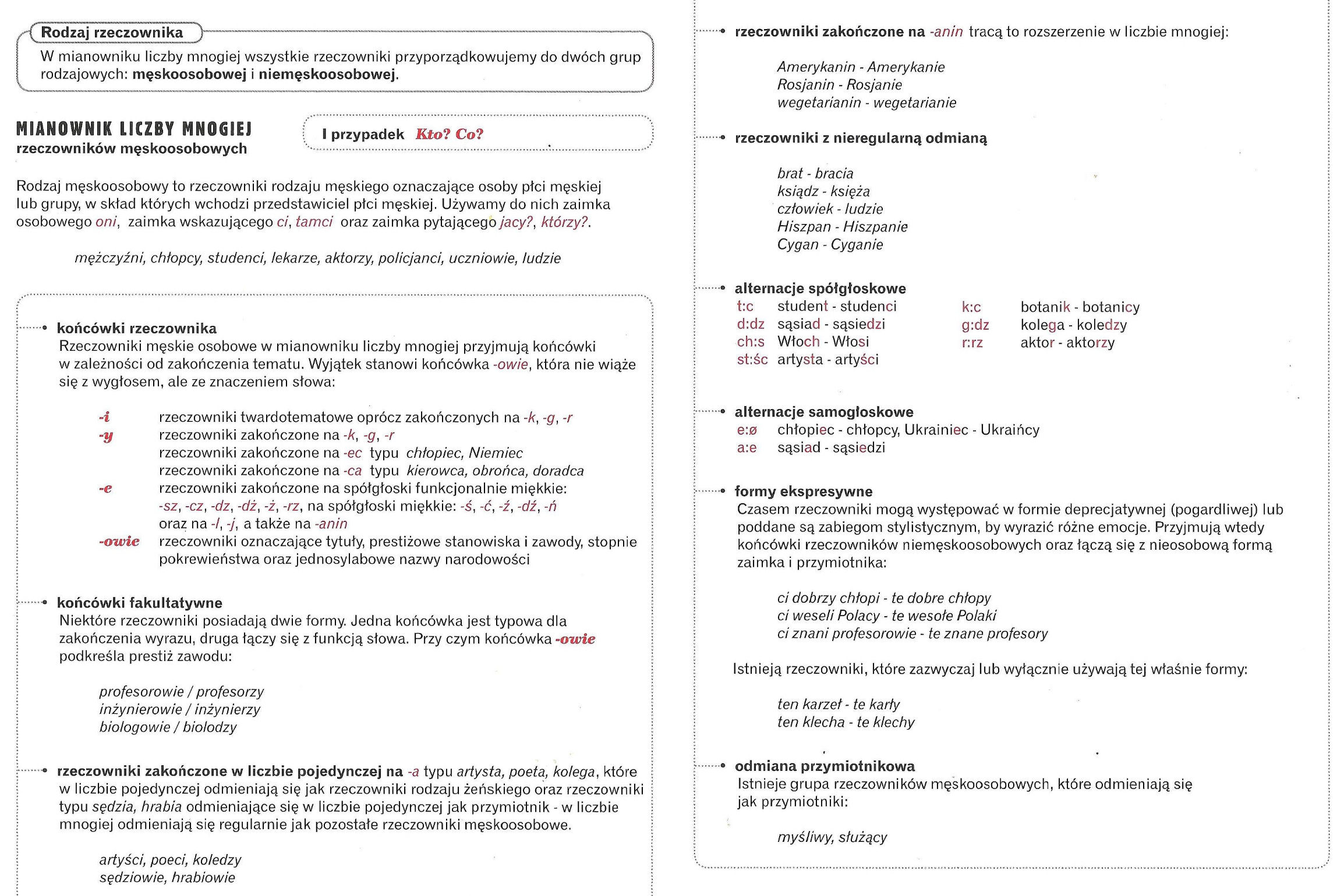Mianownik liczby mnogej przeczowników męskoosobowych