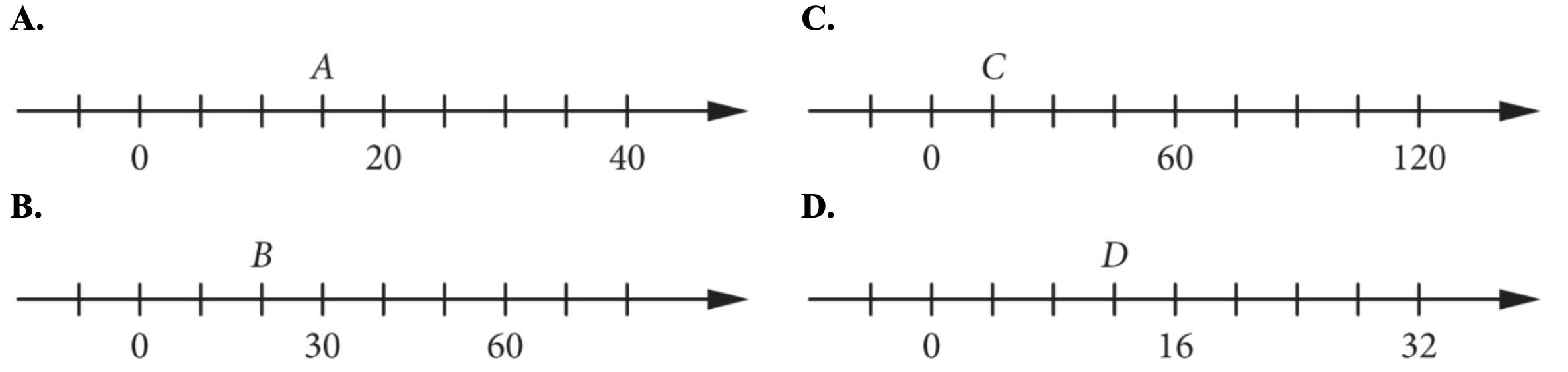 Wskaż wszystkie osie, na których pod literą jest ukryta liczba 15.