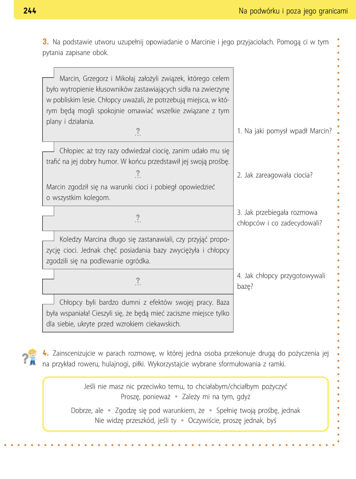 Zainscenizujcie w parach rozmowę, w której jedna osoba przekonuje drugą do pożyczenia jej na przykład roweru, hulajnogi, piłki. Wykorzystajcie wybrane sformułowania z ramki.